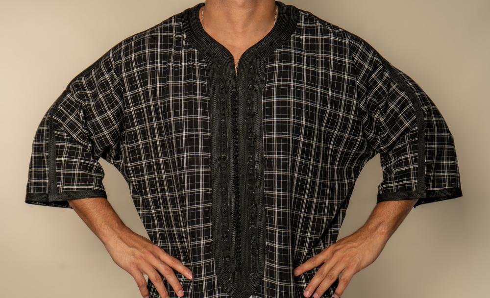 جلباب مغربي اسود بتطريز يدوي إيطالي المخطط بالرمادي هي الخيار الأمثل للرجل الذي يبحث عن الفخامة والتفرد. تصميمها الأنيق يعكس الذوق الرفيع في المناسبات الخاصة، حيث تجمع بين الأصالة والتطور العصري.